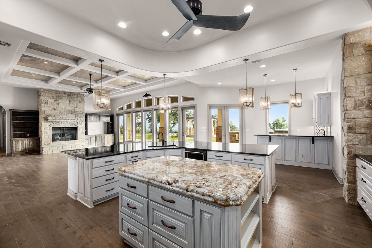 The home offers 3 spacious bedrooms, a dedicated office, formal dining room, exercise room, and 2.5 baths, all thoughtfully laid out on a single level for convenience and comfort. Step out back to an expansive covered patio with a full outdoor kitchen, or relax in the detached, powered gazebo as the sun sets over the Hill Country.